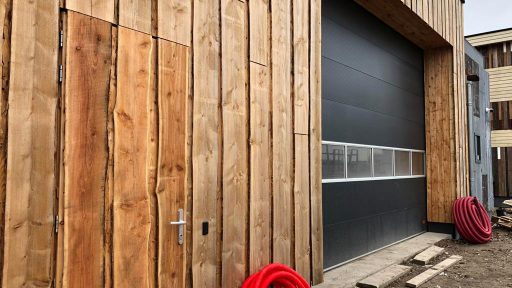 Občina Nieuwkoop si je zastavila cilj, da bo s tem krožnim občinskim dvoriščem postala zgled na področju trajnostnega upravljanja javnega prostora. Edinstvena stavba je v celoti zgrajena iz lesa in dokončana z recikliranimi materiali. Podolgovata stavba ima obliko plazilca z glavo, telesom in repom. Presenetljiva fasada je sestavljena iz lesa Accoya in letvic iz predelanega lesa različnih debelin in barvnih odtenkov. Na tem občinskem dvorišču so bila uporabljena sekcijska vrata Rolflex.